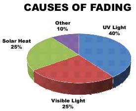 Because window film blocks over 99% of all ultraviolet radiation, it has an extremely high SPF that will blow commercial sunscreen lotions, out of the water: from a minimum of SPF 250 to SPF ratings in the thousands. Most people are familiar with the SPF value of applied sunscreen so this number is sure to impress you! Applying a solar control film to the windows of ones Car, Home or Business is like shielding the interior, protecting the inhabitants and the objects within.